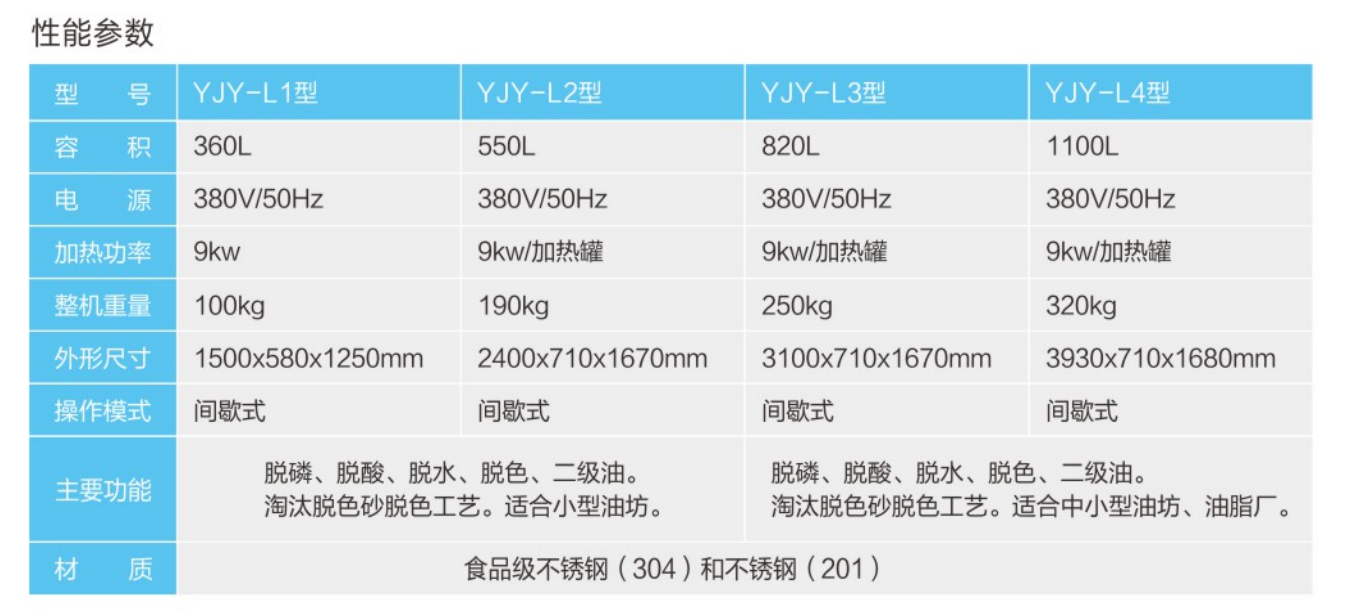 ★采用不銹鋼材質(zhì),可實現(xiàn)油品的脫磷、脫酸、脫水功能,根據(jù)用戶需要還可以進行恒溫脫色。