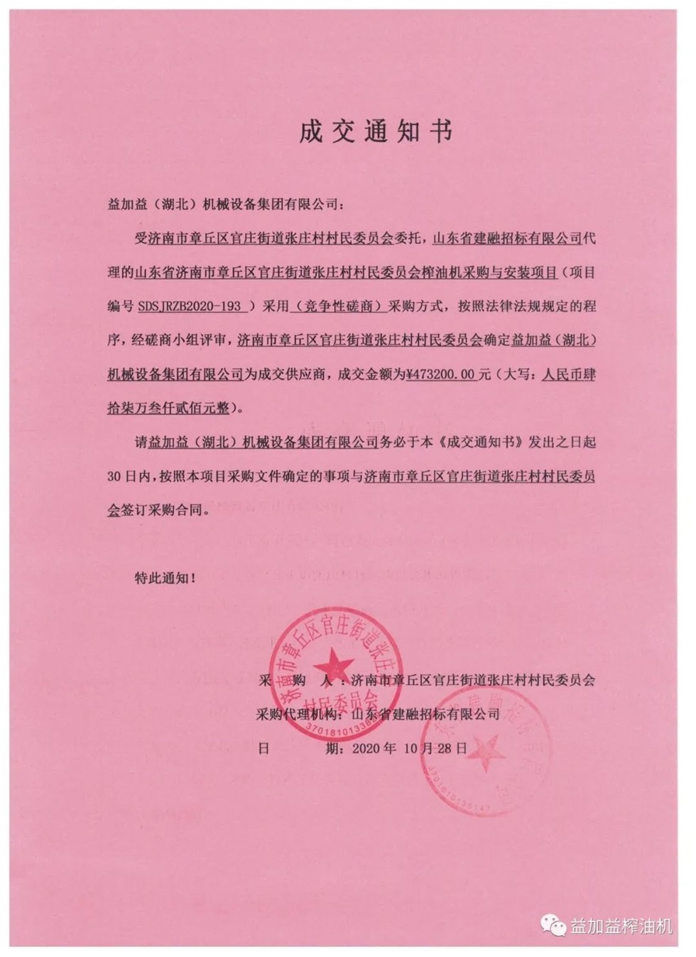 最近、益加益集團在山東省濟南市章丘區(qū)榨油機采購與安裝招標項目的競標中,憑借過硬的產(chǎn)品質(zhì)量,優(yōu)秀的新技術(shù),卓越的新工藝,新材料的應(yīng)用以及良好的企業(yè)信譽,以絕對優(yōu)勢順利中標。